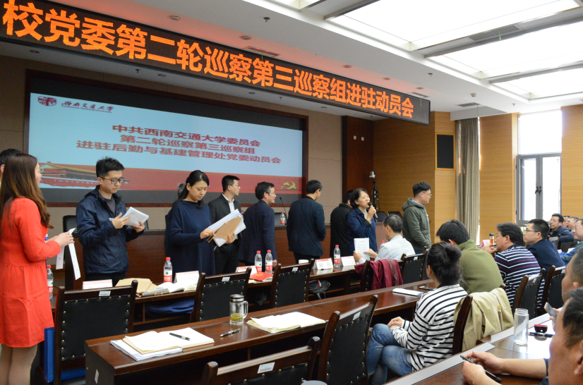 根据学校党委统一部署,3月28日下午,中共西南交通大学委员会第二轮巡察第三巡察组巡察后勤与基建管理处党委动员会在犀浦校区综合楼148会议室召开。校纪委副书记、党委巡察工作办公室主任李立,校党委第三巡察组组长贺剑、副组长吴建乐、马小荣以及巡察组全体成员出席会议,后勤与基建管理处领导班子成员、纪委委员、后基处和五个服务中心其他班子成员、“双代会”教职工代表、民主党派人士、退休党员代表以及近期退出后基处党委领导岗位同志参加了动员大会。会议由后基处党委副书记、处长宋新主持。