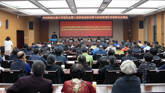 按照学校党委统一部署,2019年10月9日,学校党委第二轮巡察第三巡察组巡察后勤与基建管理处党委情况反馈会在犀浦校区综合楼148会议室召开。党委第三巡察组组长贺剑代表党委第三巡察组进行了大会反馈,学校纪委副书记、党委巡察工作办公室主任李立受党委巡察工作领导小组委托对整改工作提出要求,后勤与基建管理处副书记(主持工作)杨韬作表态发言,后基处处长宋新主持会议。大会反馈前,党委第三巡察组组长贺剑分别向后勤与基建处党政主要负责人和领导班子单独反馈了巡察情况。