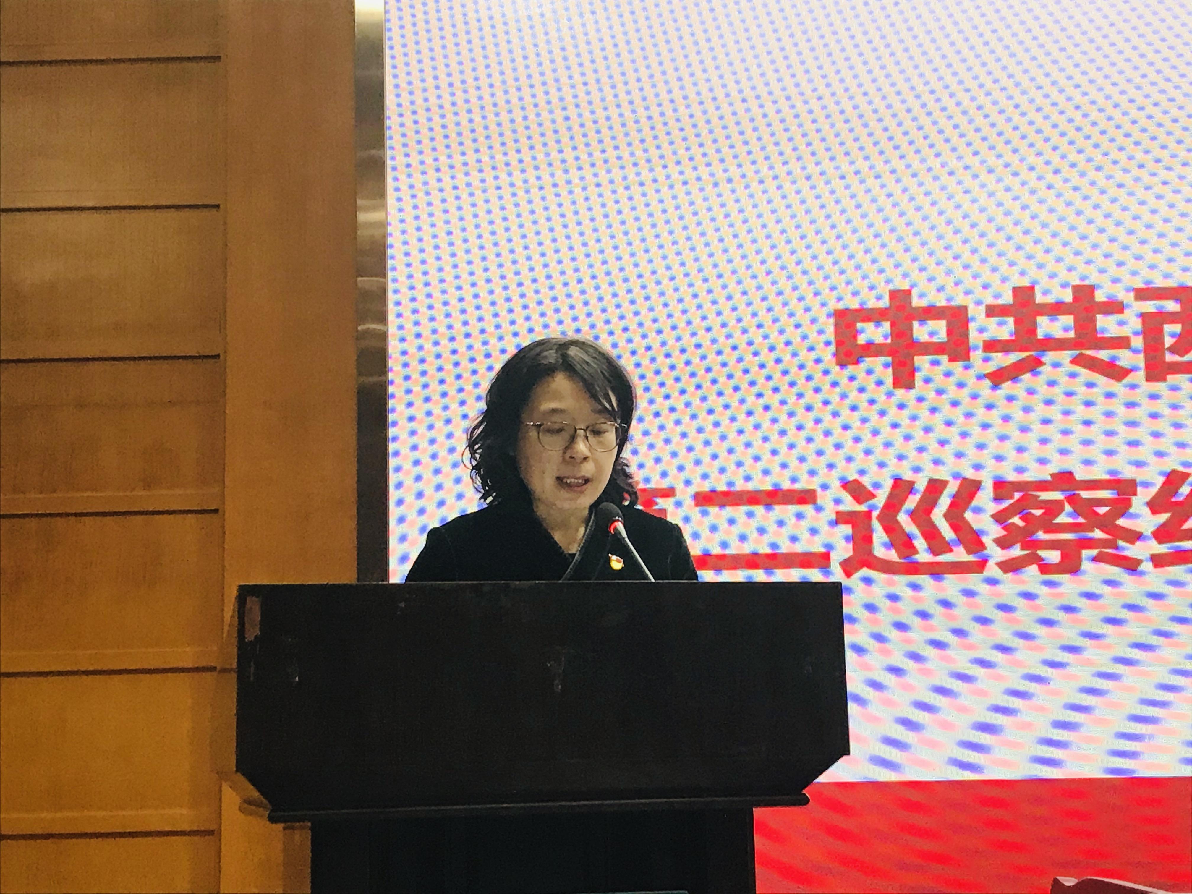郑江代表学校党委第三轮巡察第二巡察组作动员讲话。她指出,做好这次巡察工作,一要认真学习领会,把握精神要义,把思想和行动统一到中央、教育部党组和学校党委对巡察工作的决策部署上来。这次巡察,充分体现了学校党委对机械工程学院工作的高度重视,是对机械工程学院党委推进党的建设、全面从严治党以及党风廉政建设的全面体检和有力促进。希望机械工程学院上下把这次巡察当作重要契机,树牢“四个意识”、坚定“四个自信”,坚决做到“两个维护”,深刻认识巡察工作的重要意义,加强政治建设,强化政治责任和政治担当,不断强化全面从严治党主体责任,进一步加强党的建设,充分发挥机械工程学院党委政治核心作用,推动机械工程学院工作再上新台阶。二要坚定政治巡察职能定位,突出政治建设,强化政治监督,牢牢把握巡察重点任务。本次巡察工作与“不忘初心、牢记使命”主题教育紧密结合,确保政治清明、政通人和;与“双一流”建设紧密结合,聚焦学校“双一流”建设,确保特色鲜明、事业长青;与巡视整改相结合,确保标本兼治、取得实效。巡察工作将牢牢把握“两个维护”,对标中央关于深化政治巡视、强化政治监督的“六个围绕,一个加强” “五个持续”“四个聚焦”的明确要求,深化政治巡察内涵,按照教育部党组突出“三个重点”的要求,聚焦“双一流”建设,加强“十个紧盯”,为学校落实立德树人根本任务提供坚强的政治保证。三要依规依纪,确保工作高效有序推进。巡察组将严格按照巡察工作有关规定, 通过听取汇报、个别谈话、受理信访、抽查核实、向有关知情人询问情况、调阅资料、列席会议、测评及问卷、深入了解、专项检查及学校党委批准的其他方式开展工作。四是强化政治担当,坚决完成学校党委交给的巡察任务。完成好学校党委交给的这次巡察任务是学院党委和巡察组共同的政治责任。巡察组将坚持稳中求进的工作总基调,紧紧依靠学院党委开展工作,广泛听取各方面的意见,深入检查了解情况。学院党政领导班子,要把接受巡察监督作为一项重要的政治任务,全力支持配合巡察组开展工作。