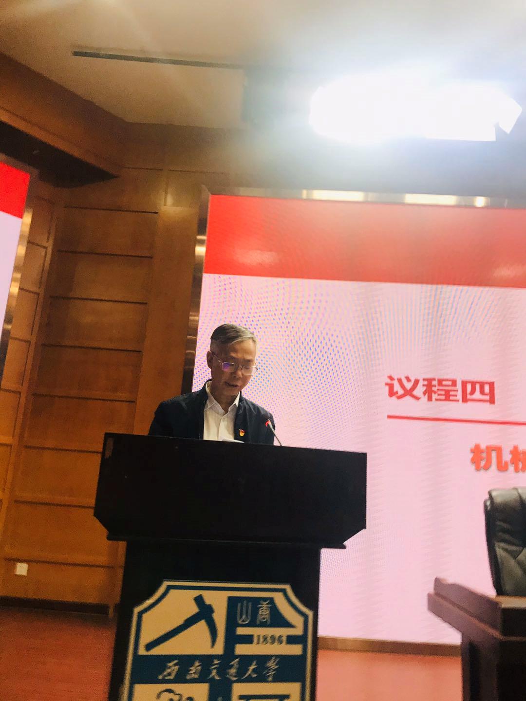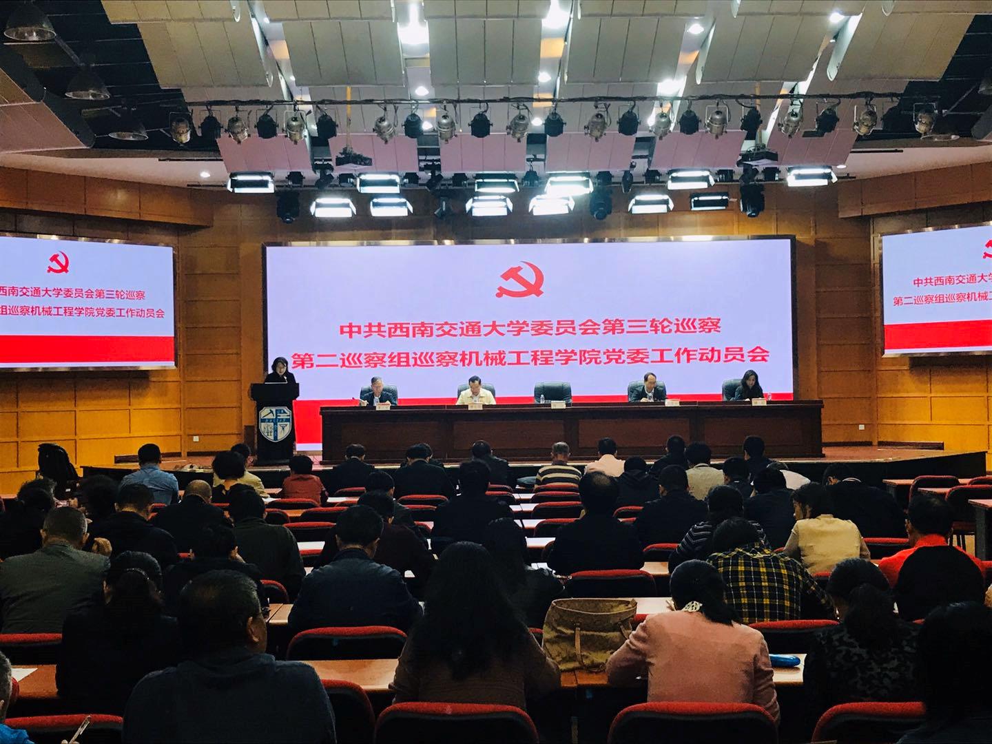 根据学校党委统一部署,2019年10月10日下午,中共西南交通大学委员会第三轮巡察第二巡察组巡察机械工程学院党委工作动员会召开。学校正处级纪检监察员曹宏伟,党委第二巡察组组长郑江、副组长吴建乐、潘喆及巡察组成员,机械工程学院党政领导班子全体成员、在校全体教职员工、离退休人员代表和学生代表等出席动员会。会议由机械工程学院党委书记董大伟主持。