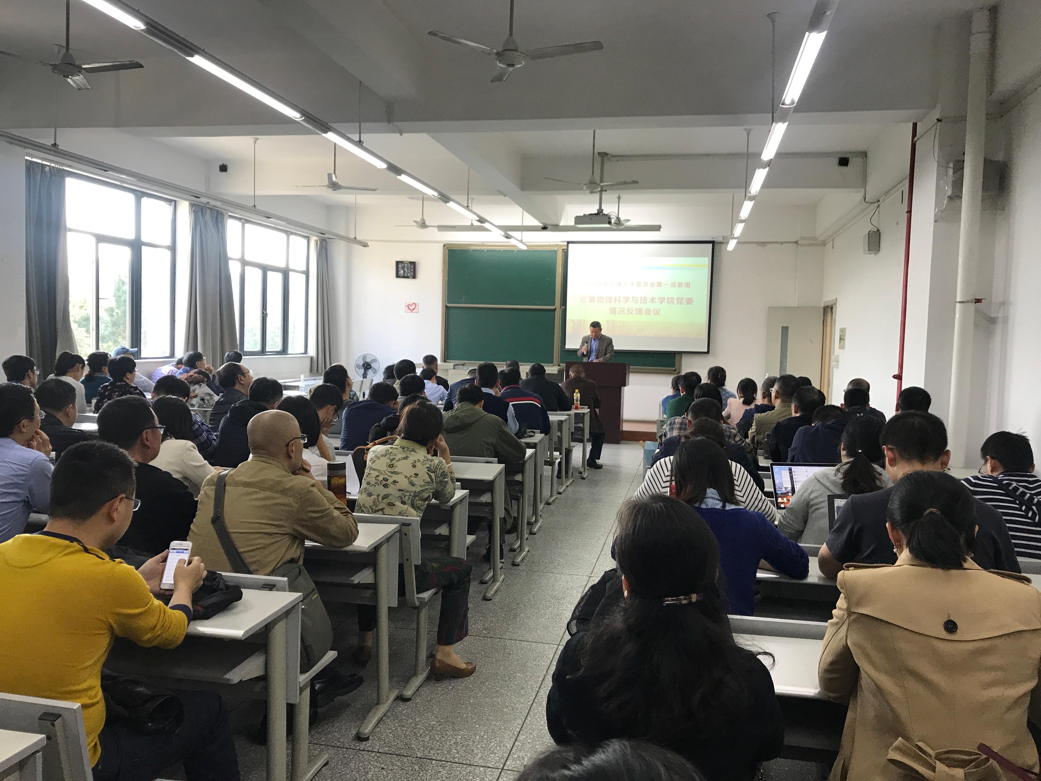 党委第一巡察组副组长刘建平、金建明出席会议,物理科学与技术学院全体班子成员、全体教职工、离退休职工和学生代表参加了反馈大会。