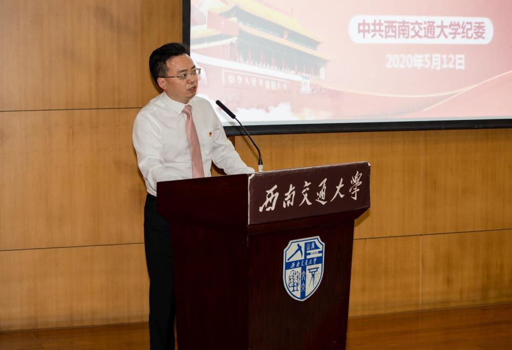 5月12日,中共西南交通大学委员2020年全面从严治党工作会议在犀浦校区图书馆1号报告厅召开,会议学习贯彻落实习近平总书记在第十九届中央纪委四次全会上的重要讲话精神,总结2019年工作,分析研究新形势新任务,对2020年全面从严治党工作作出安排部署。校党委书记王顺洪、校长杨丹及校领导班子全体成员出席会议。会议由党委副书记桂富强主持。