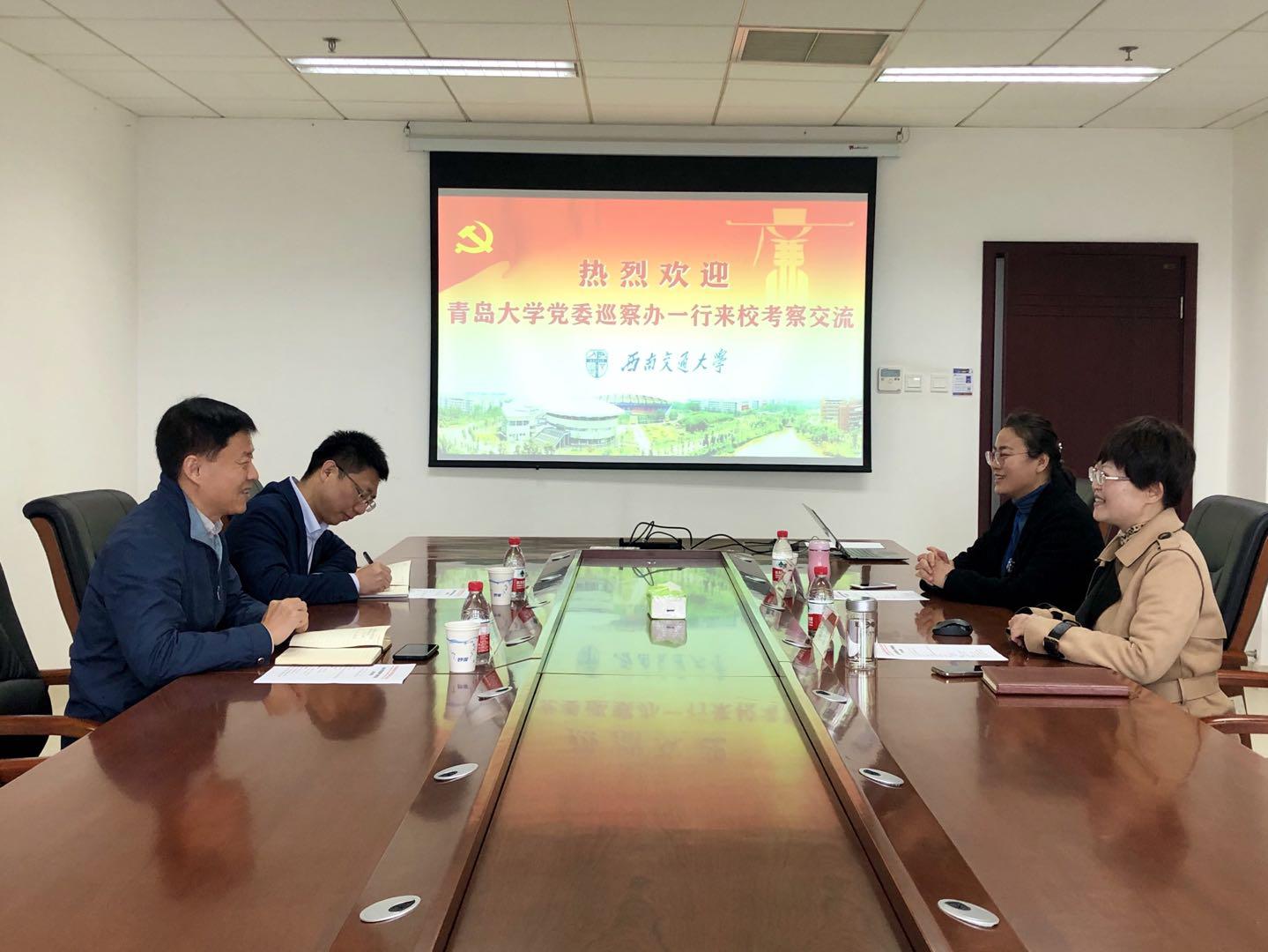 2020年11月3日上午,青岛大学党委巡察办公室主任张辉和党委巡察办公室副主任由飞一行来我校交流巡察工作。我校纪委副书记兼党委巡察办公室主任李立和党委巡察办公室副主任迟艳艳出席了交流会。会议在综合楼505会议室举行,由李立主持。