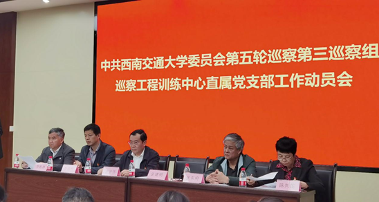 2021年4月22日,中共西南交通大学委员会第五轮巡察第三巡察组巡察工程训练中心直属党支部工作动员会召开。动员会前,巡察组与中心领导班子作了见面沟通。会上,第三巡察组组长金建明作了动员讲话,通报了巡察工作主要任务、工作安排和要求,学校正处级纪检监察员曹宏伟受学校党委巡察工作领导小组委托对做好巡察工作提出了要求。直属党支部书记陈兴莲作表态发言,主任李柏林主持会议。