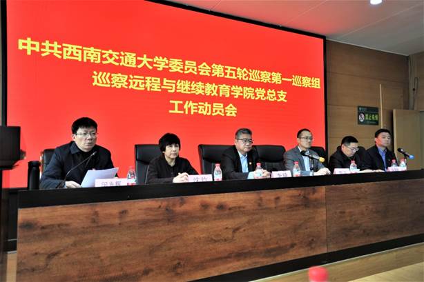 2021年4月22日,中共西南交通大学委员会第五轮巡察第一巡察组巡察远程与继续教育学院党总支工作动员会召开。动员会前,巡察组与学院领导班子作了见面沟通。会上,第一巡察组组长廖军作了动员讲话,通报了巡察工作主要任务、工作安排和要求,学校纪委副书记兼纪委办公室主任李琦受学校党委巡察工作领导小组委托对做好巡察工作提出了要求。学院党总支书记闵光辉作表态发言,学院院长钱晓群主持会议。